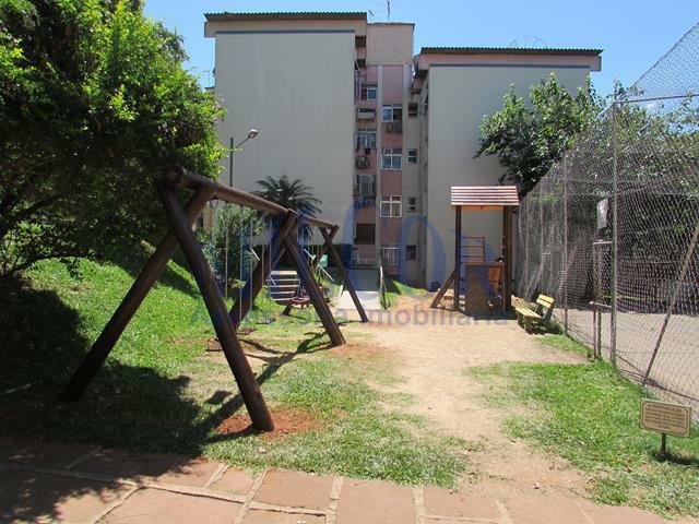 MILCOR vende apartamento térreo 2 dormitórios, sala, cozinha, banheiro, área e pátio. Condomínio com portaria, playground, salão de festas.